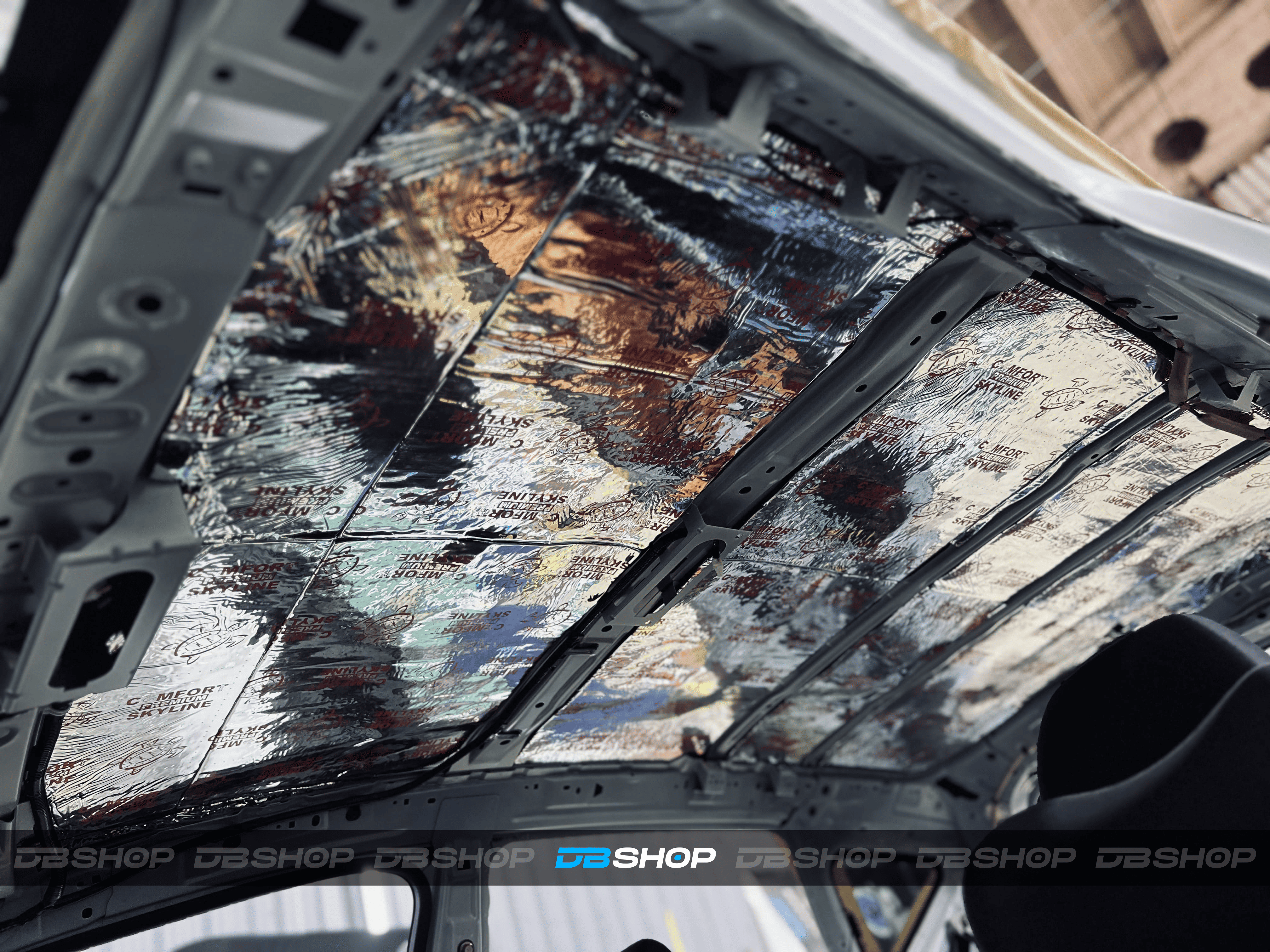Первым слоем на крышу нанесли виброизоляцию Comfort Mat Viper. Ультралегкий инновационный виброизоляционный материал премиального уровня толщиной 3 мм с мастичным слоем и расширенным КМП.
